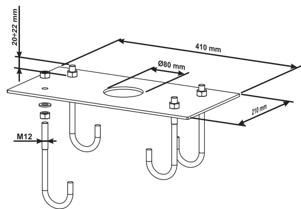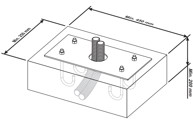 Схема заливки фундаментного основания (при расположении не на подъеме рекомендуется делать опалубку, поднимая фундамент на высоту 10 см над поверхностью, чтобы защитить тумбу от талых вод и потоков дождевой воды):
