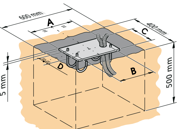 Расшифровка размеров закладной пластины и межосевых отверстий представлена ниже: