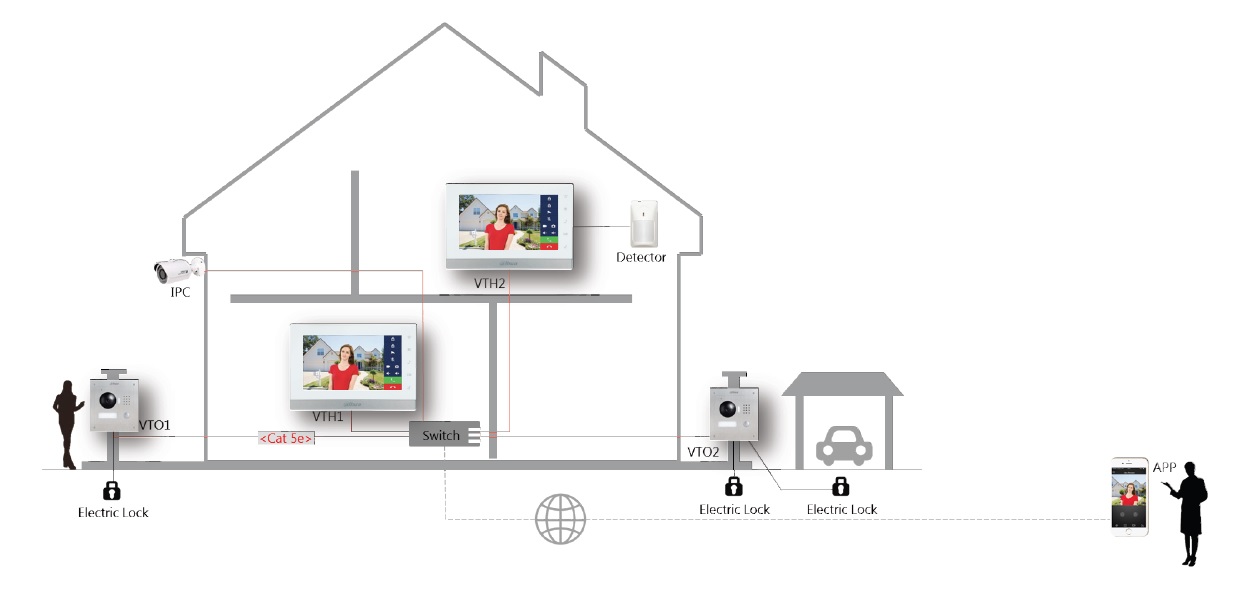Но, самое главное в IP видеодомофоне DHI-VTH1560B – это емкость системы, которую можно построить на его базе. Можно просто купить IP видеодомофон Dahua DH-VTH1560B и построить у себя дома или на даче не просто домофонную систему, связывающую в единую сеть подъездные ворота, гараж, подвал, сауну, прихожую и спальню, а целую современную систему безопасности.