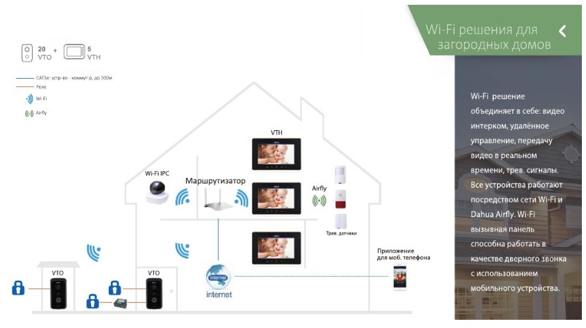 Но, самое главное в IP видеодомофоне DHI-VTH5221DW – это емкость системы, которую можно построить на его базе. Можно просто купить IP видеодомофон Dahua DHI-VTH5221DW и построить у себя дома или на даче не просто домофонную систему, связывающую в единую сеть подъездные ворота, гараж, подвал, сауну, прихожую и спальню, а целую современную систему безопасности.