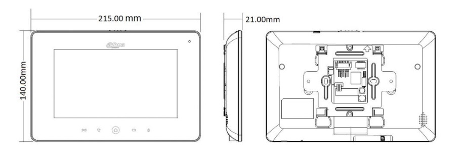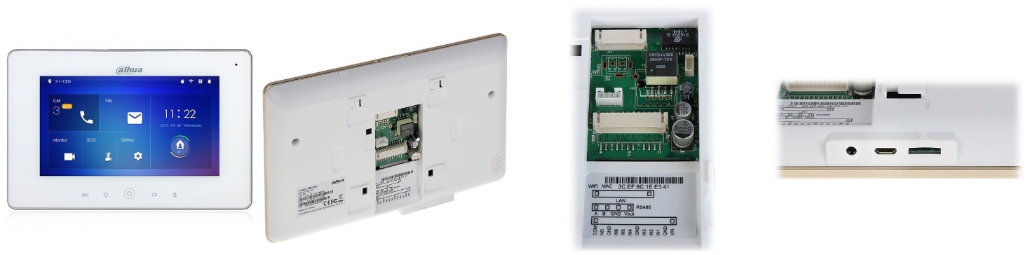 Емкостный сенсорный дисплей 7". Разрешение 1024x600 пикселей. 6 тревожных входов/1 тревожный выход. Максимальная потребляемая мощность 7Вт, Ethernet 100Мбит/с. Возможность подключения до 20 IP-вызывных панелей и просмотр до 8 IP-камер.