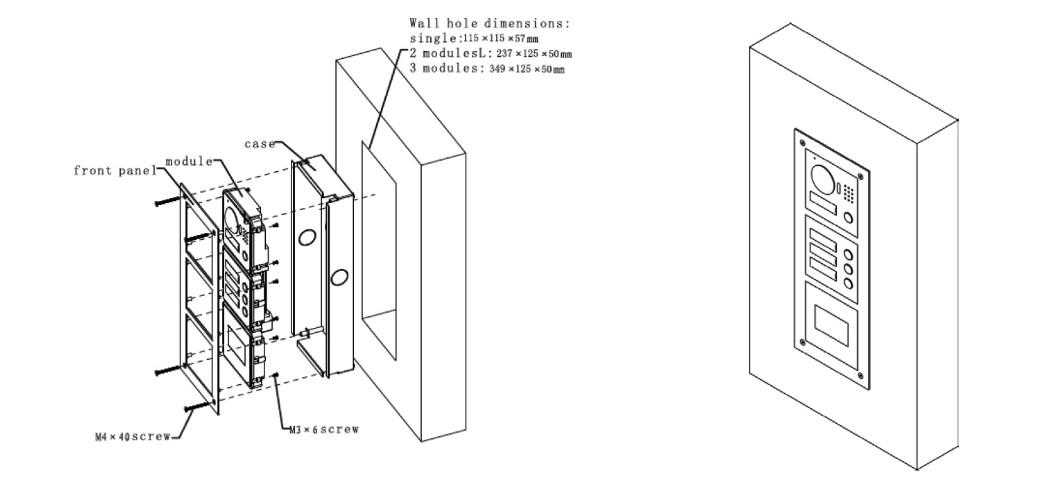 VTOB112 - это монтажная коробка, которая специально сделана для возможности установки трех вызывных видеопанелей врезным способом. Для этого в стене делается углубление и закрепляется коробка, а затем устанавливаются панели вызова.