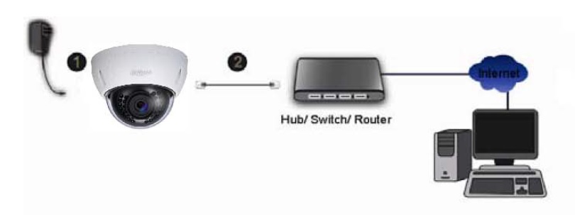 3. Подключите камеру к коммутатору с поддержкой технологии PoE или используйте внешнее питание;