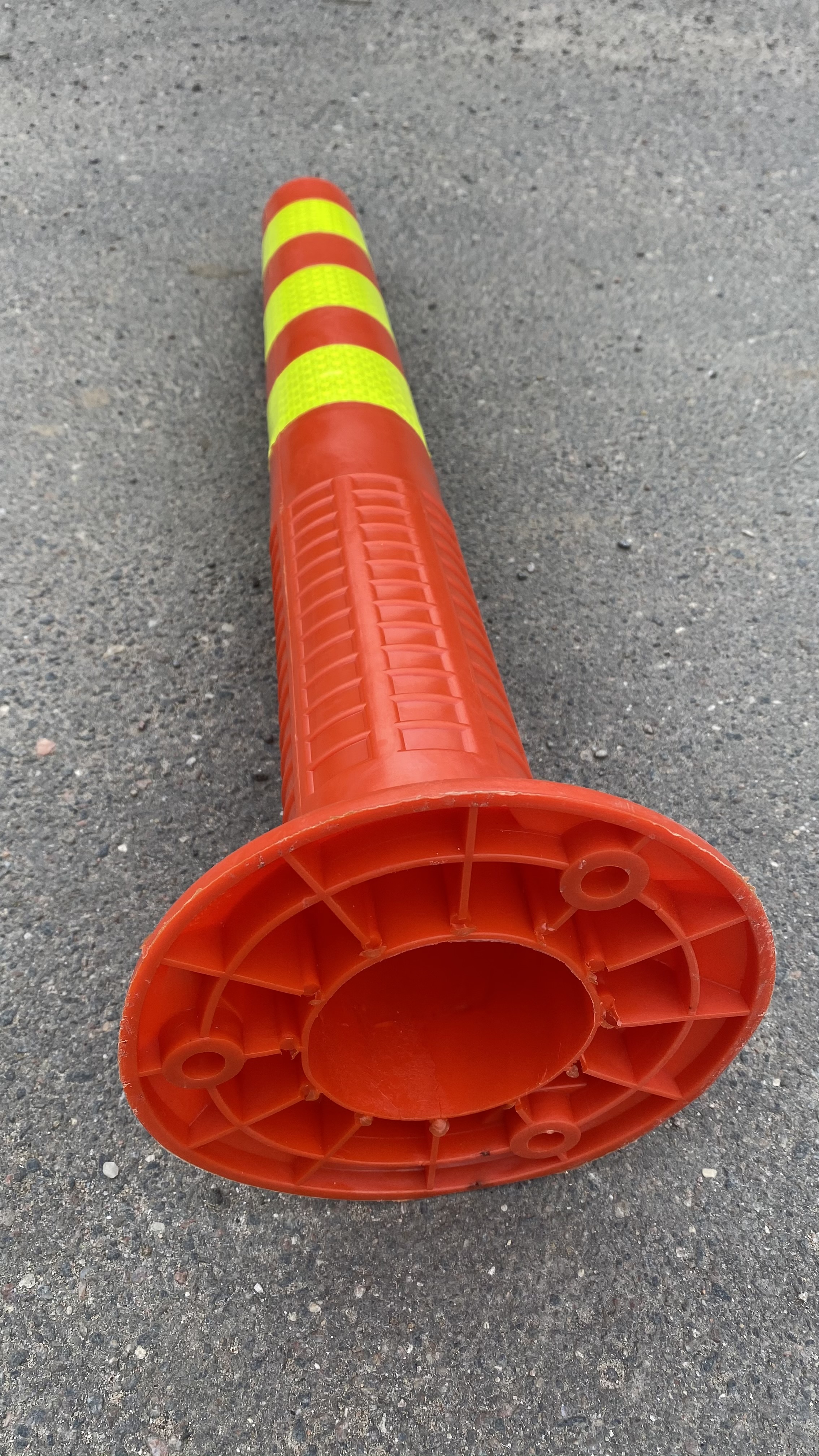 Столбик сигнальный упругий или гибкий парковочный столбик SN-PE-FC750 выполнен из эластичного полиуретана яркого оранжевого цвета. В верхней части столбик оснащен тремя световозвращателями желтого или белого цвета. Столбик имеет цельную конструкцию. В нижней части имеется специальное рифление для наилучшего восприятия горизонтальных нагрузок. В верхней части столбик оснащен отверстием, которое можно использовать для закрепления соединителя для цепи или установки фонарика.