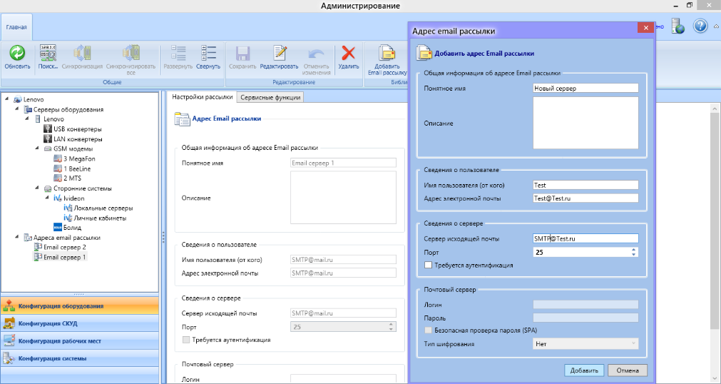 - Возможность использования SMTP серверов с режимом SSL\TSL шифрования данных;