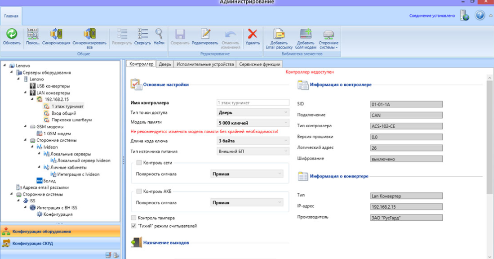 - Добавление и удаление оборудования, возможность внесения любых изменений в настройки без остановки работы всех остальных модулей;