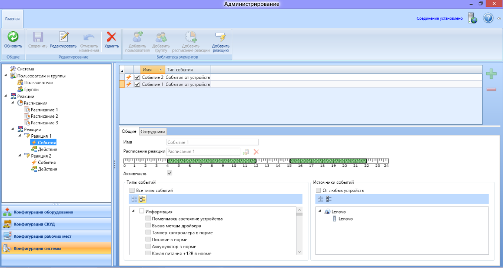 - Большой набор интеграций с внешними системами: Bolid, ISS, ITV, 1c, VisitorControl и др.;