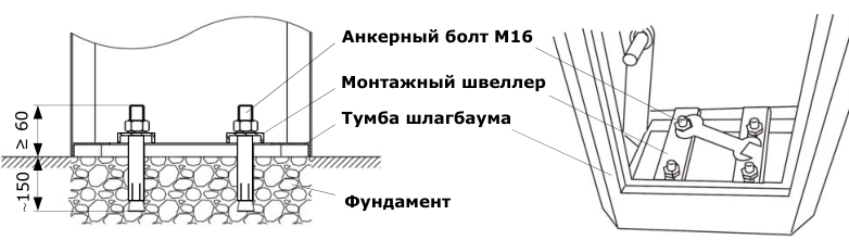 Схема и способ крепления шлагбаума: