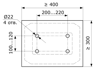 Схема заливки фундаментного основания (при расположении не на подъеме рекомендуется делать опалубку, поднимая фундамент на высоту 10 см над поверхностью, чтобы защитить тумбу от талых вод и потоков дождевой воды):