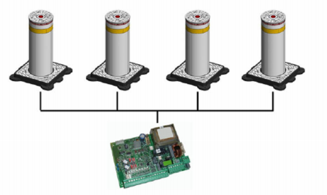 Гидравлический боллард FAAC J200HA поставляется в комплекте с блоком управления, сигнальными лампами, звуковым оповещателем и нагревателем. Блок управления может управлять четырьмя боллардами типа J200 HA синхронно.