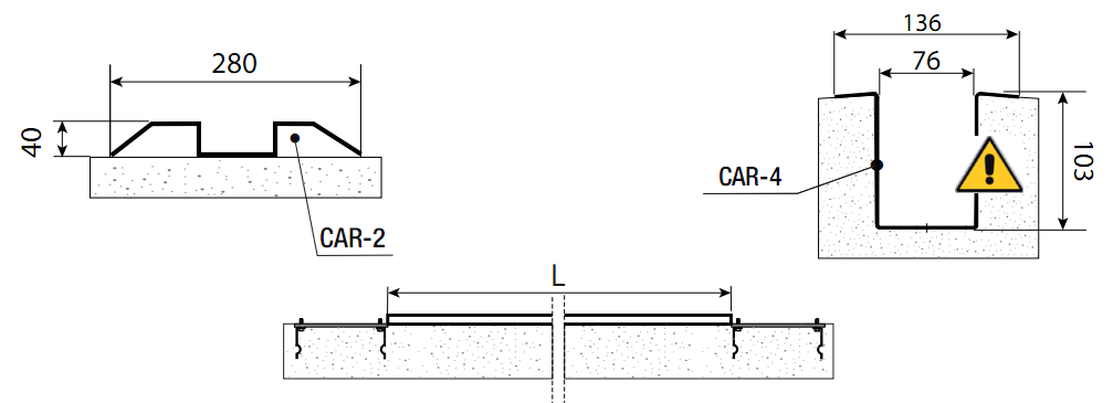 Также рекомендуется к установке желоб для цепи (для предотвращения повреждения цепи), который может быть накладным и встраиваемым. Желоб поставляется секциями по 2 метра. Размеры желобов приведены ниже.