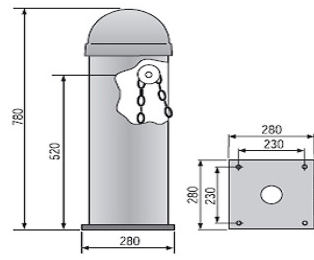 Размеры колонки цепного барьера и крепежного основания приведены ниже: