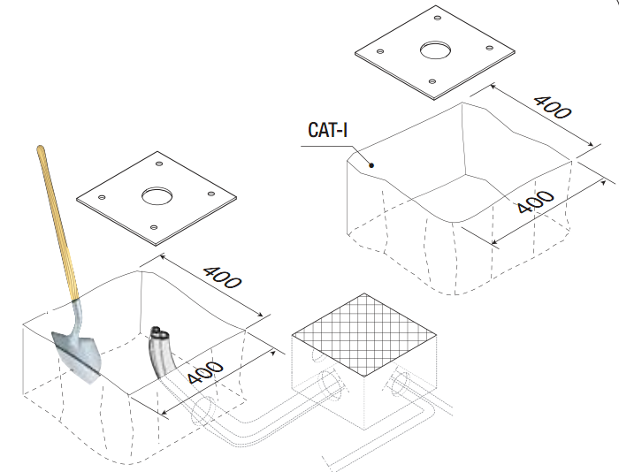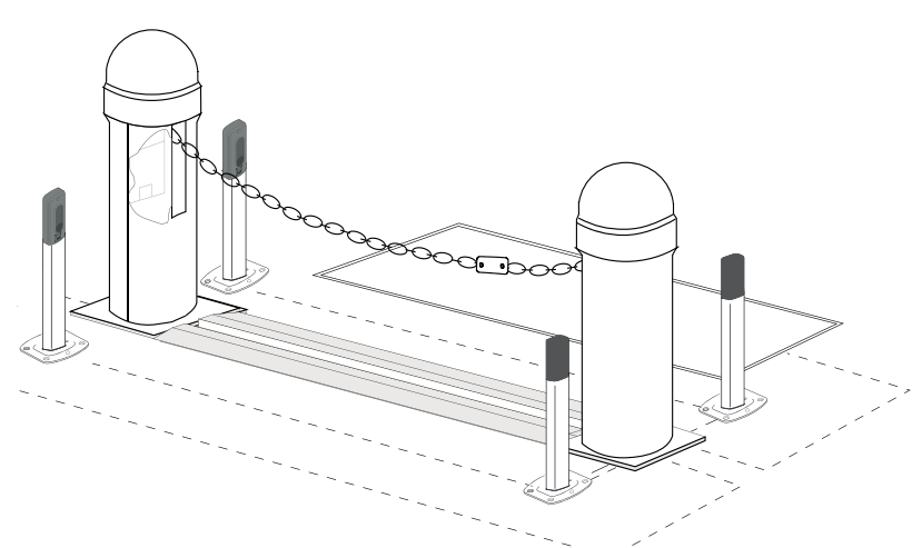 Для установки цепного барьера необходимо осуществить подготовку фундамента с использованием (по возможности) закладных пластин:
