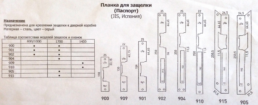 Планка JIS 909G короткая - предназначена для крепления защелки к дверной коробке. Подходит к защелкам JIS 14хх серии. Узкая, универсальная.