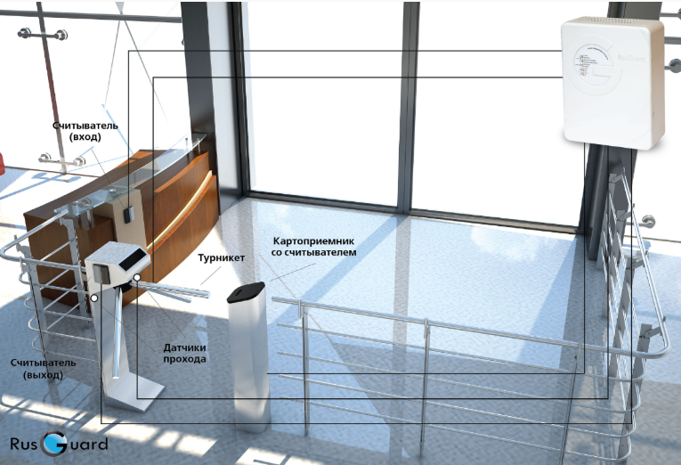 • Турникет (считыватели на вход и на выход)