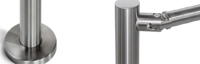 Анкерное 4-точечное крепление к покрытию. Поручни крепятся к стойке в с помощью специальных крепежных отверстий и патрубков.