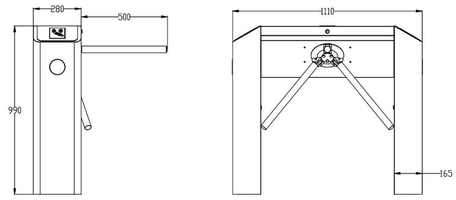 Габаритные размеры турникета без планок (Д*Ш*В)
