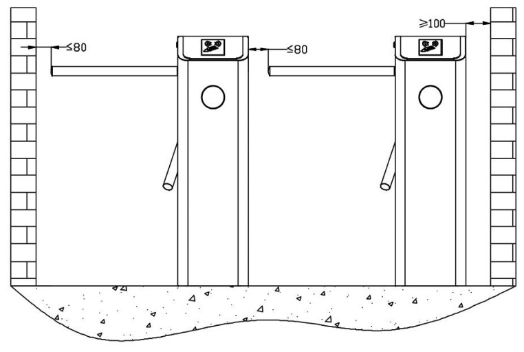 ОТСТУПЫ ДЛЯ РАЗМЕЩЕНИЯ ТУРНИКЕТОВ ПО ОТНОШЕНИЮ К ОГРАЖДЕНИЯМ НИЖЕ
