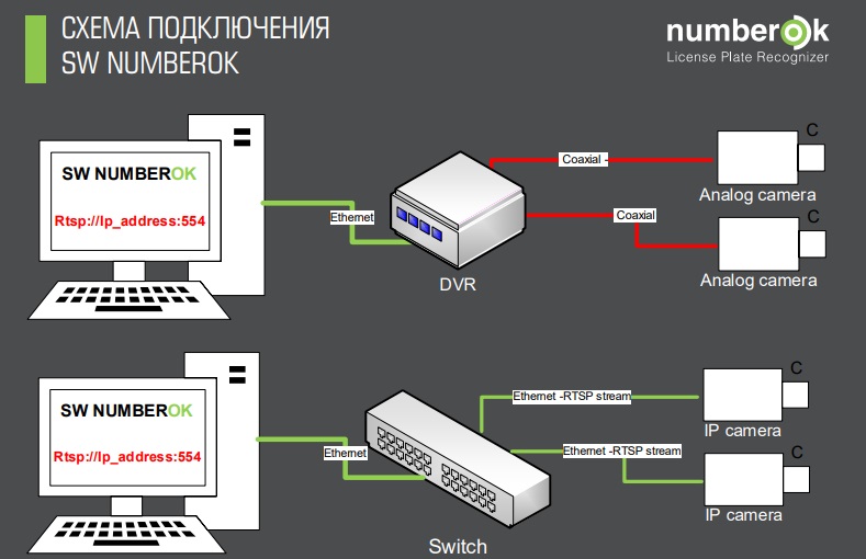 NumberOk SMB совместим с IP-камерам, платам видеозахвата Line, регистраторами Dahua и другими устройствами, поддерживающие функцию передачи данных с помощью RTSP-потока.