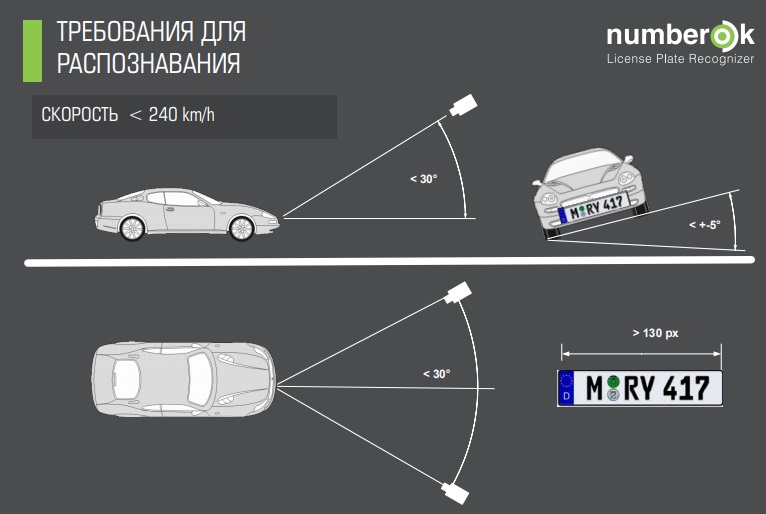 - распознавание номера при скорости автомобиля до 250 км/час (в зависимости от используемой видеокамеры)
