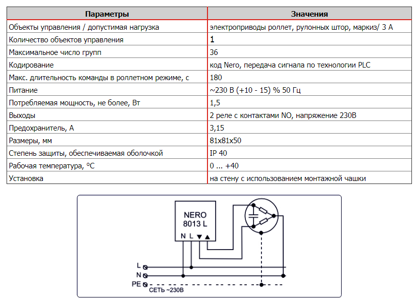Одноканальное исполнительное устройство с лицевой панелью Nero 8013L- это приемник, предназначенный для управления электроприводом роллет или рулонных штор в составе системы Nero.