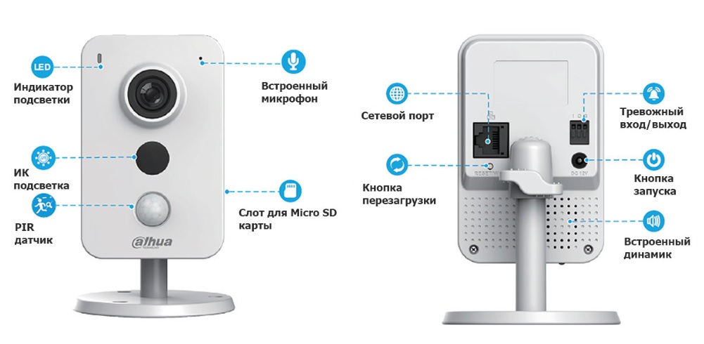- Услышать и огласить — эта кубическая камера оснащена встроенным микрофоном и динамиком, которые позволяют улучшить понимание происходящего в кадре, а также реализовать двустороннюю связь с подчиненными. С одной стороны это позволяет улучшить эффективность охранного видеонаблюдения в целом, в другой — помочь в улучшении эффективности бизнес-процессов.