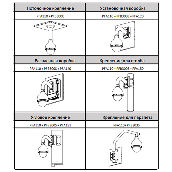 Видеокамеру следует устанавливать на вертикальной или горизонтальной поверхности в соответствии с руководством по эксплуатации.