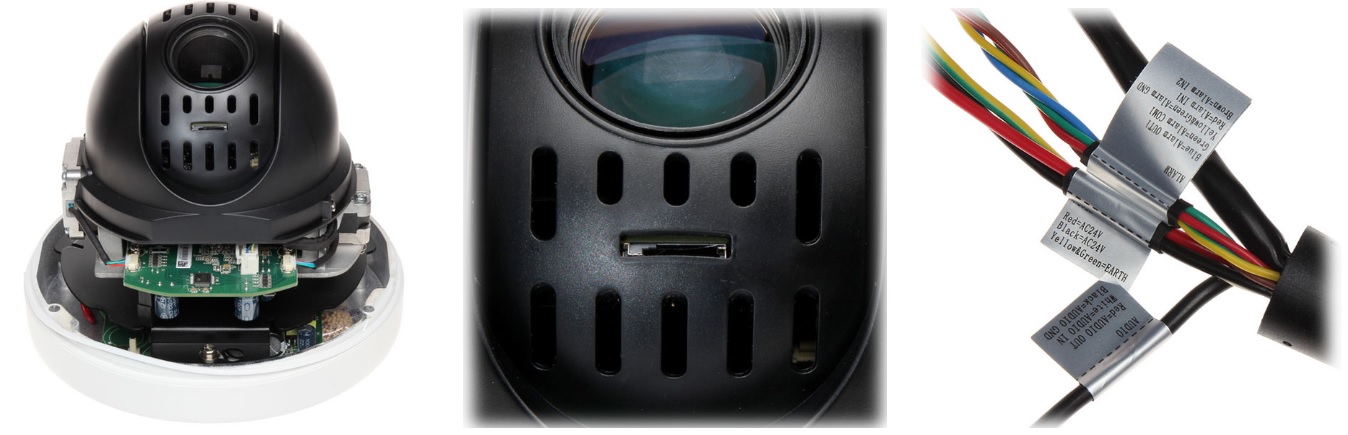 Модель поддерживает такие функции, как WDR (широкий динамический диапазон) до 120 дБ, технологию шумоподавления Ultra DNR. Осуществляется поддержка карт памяти MicroSD до 128Гб. Металлический корпус камеры обладает высшей степенью защиты от механических воздействий IK10 и высокой степенью защиты IP66 от воздействий окружающей среды .