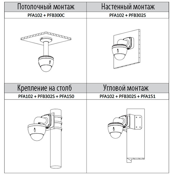 Видеокамеру следует устанавливать на вертикальной или горизонтальной поверхности в соответствии с руководством по эксплуатации.