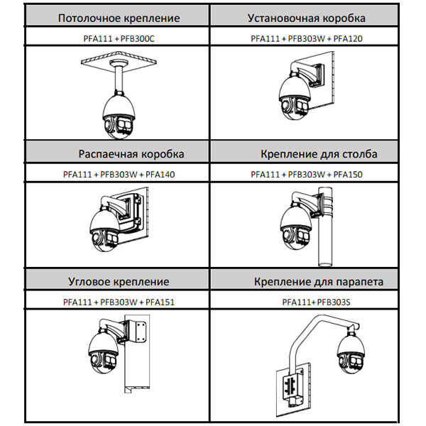 Видеокамеру следует устанавливать на вертикальной или горизонтальной поверхности в соответствии с руководством по эксплуатации.