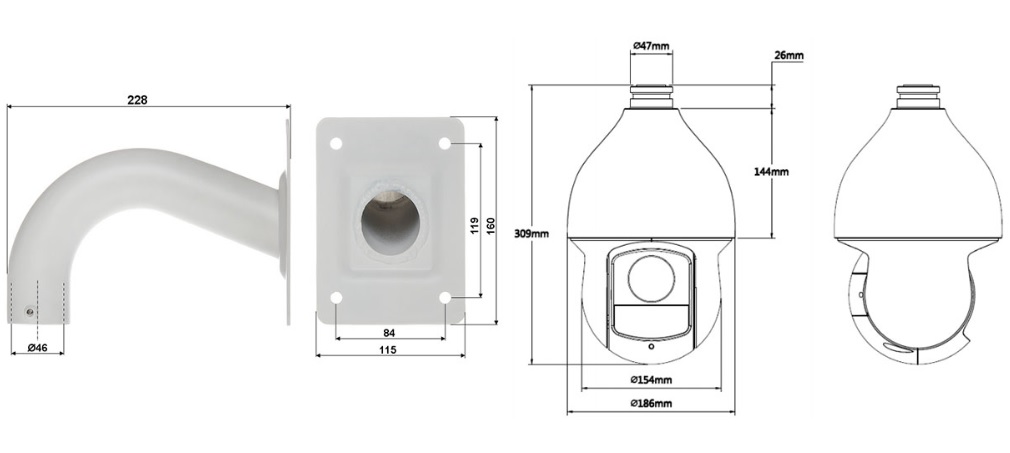 Крепкий металлический корпус видеокамеры DH-SD59225U-HNI оптимально подходит для работы в любых условиях на открытых площадках вне помещений или в неотапливаемых складах и т.д. Эта модель роботизированной видеокамеры способна постоянно работать при температуре от -40°C до +70°C. DH-SD59225U-HNI классифицирована по индексу пылезащиты и влагозащиты с индексом IP66, что позволяет беспрепятственно работать при любых климатических условий без специальных дополнительных условий или ограничений. Габаритные размеры видеокамеры: Ø186x309 мм. DH-SD59225U-HNI работает от источника переменного напряжения 24 Вольт с потреблением не более 23 Вт. Комплектация видеокамеры предусматривает поставку кроме самой IP камеры также инструкции, настенного кронштейна и фирменного блока питания.