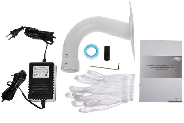 В комплект поставки входит кронштейн для крепления на стену и блок питания.