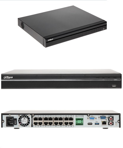 Поддержка протокола ONVIF 2.4, CGI Conformant, работа с камерами сторонних производителей, 1 аудиовход/1 аудиовыход. Возможность подключения 2-х жестких дисков до 6Тб. Видеорегистратор оснащен HDMI, VGA видеовыходами, поддержка разрешения 4K позволяет подключать к регистратору монитор с рабочим разрешением до 3840 × 2160 пикселей. Оснащен 2-мя USB-портами для периферийных устройств, встроенным коммутатором на 16 портов с поддержкой PoE для подключения камер, осуществляет поддержку функций интеллектуальной системой видеоаналитики (IVS) камер (обнаружения движения, MD зоны: 396 (22×18), потери видео, взлома).
