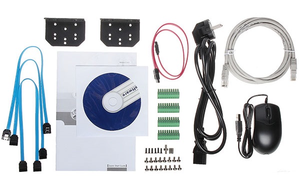 Пропускная способность до 200Мбит/с. Источник питания –сеть сеть 100~240V, потребление <13,7Вт (без жёстких дисков).